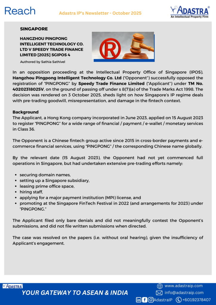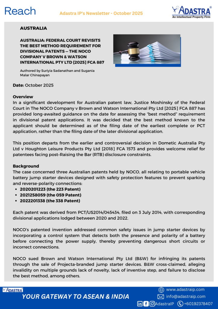 interest for protection of clients’ invention across multiple ASEAN jurisdictions and